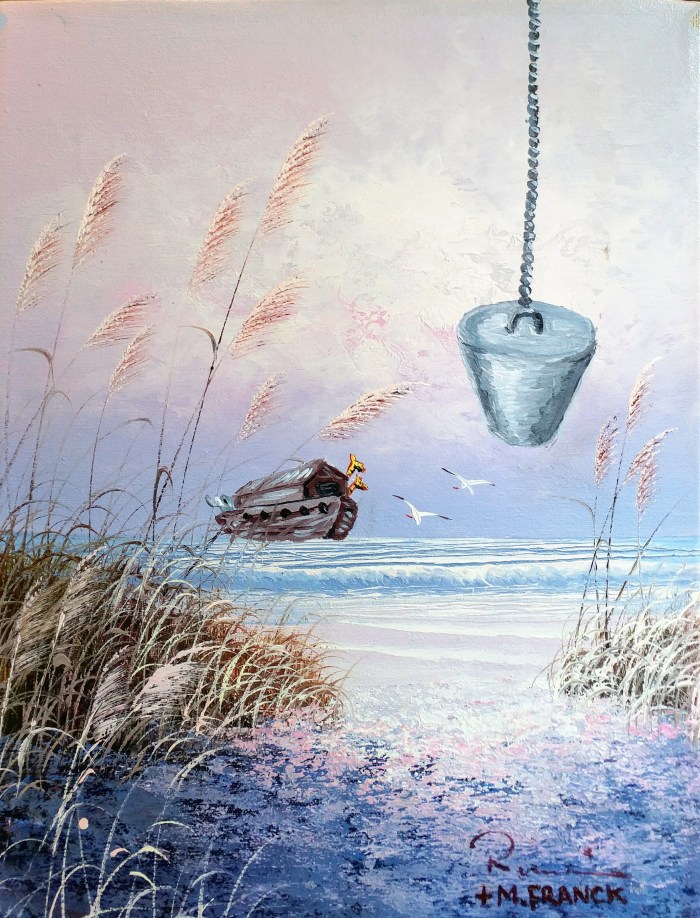 I take bad and discarded art, generally from thrift stores, and ‘improve’ on them. For a complete collection of my art, a term I use very loosely, go to matthewfranck.com/portfolio