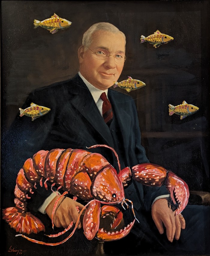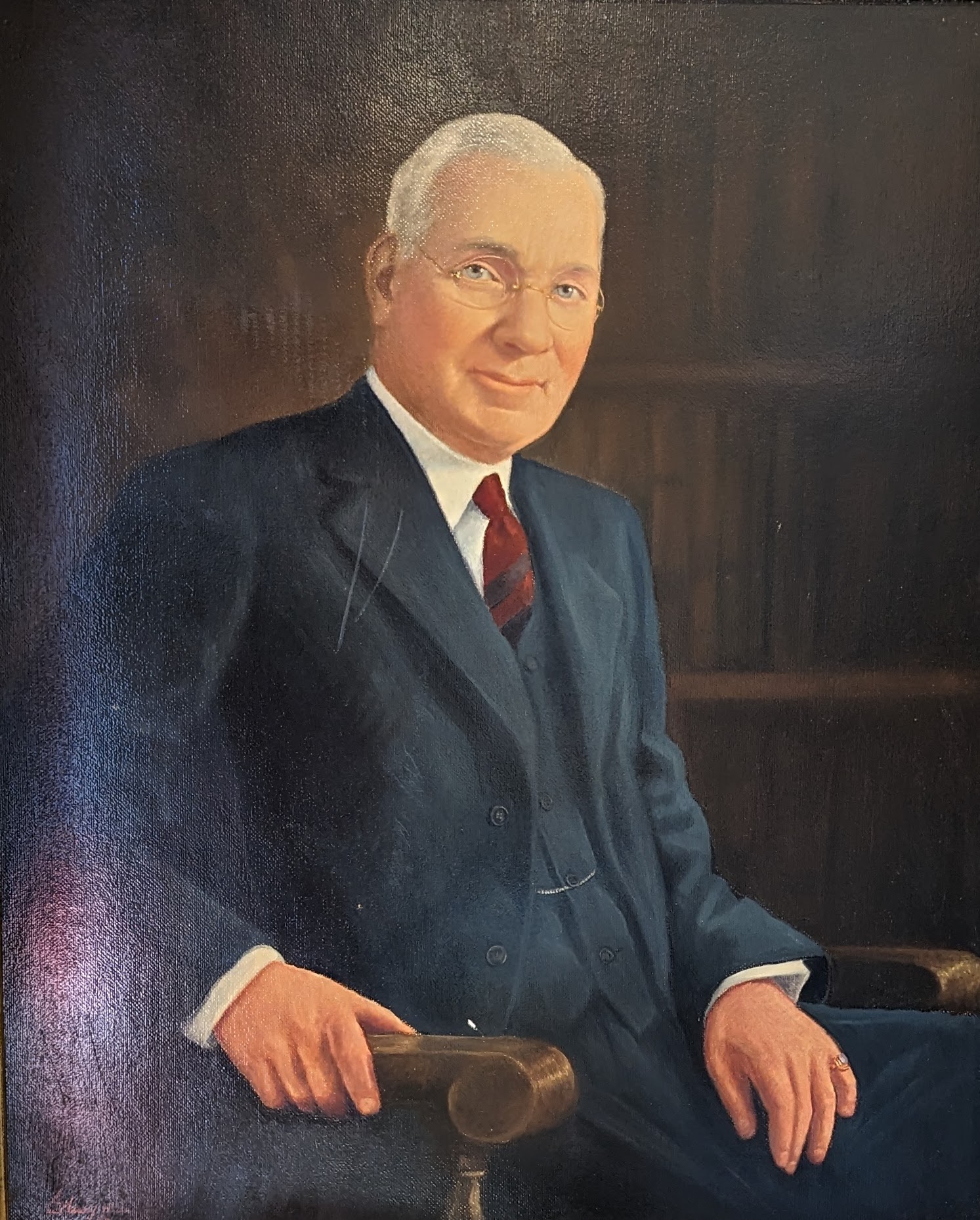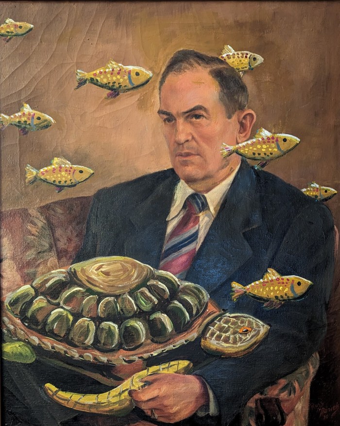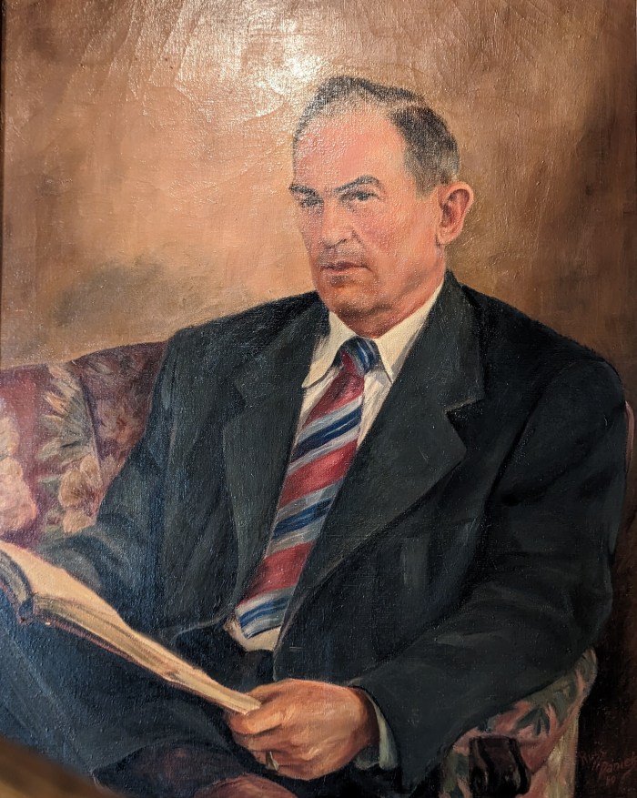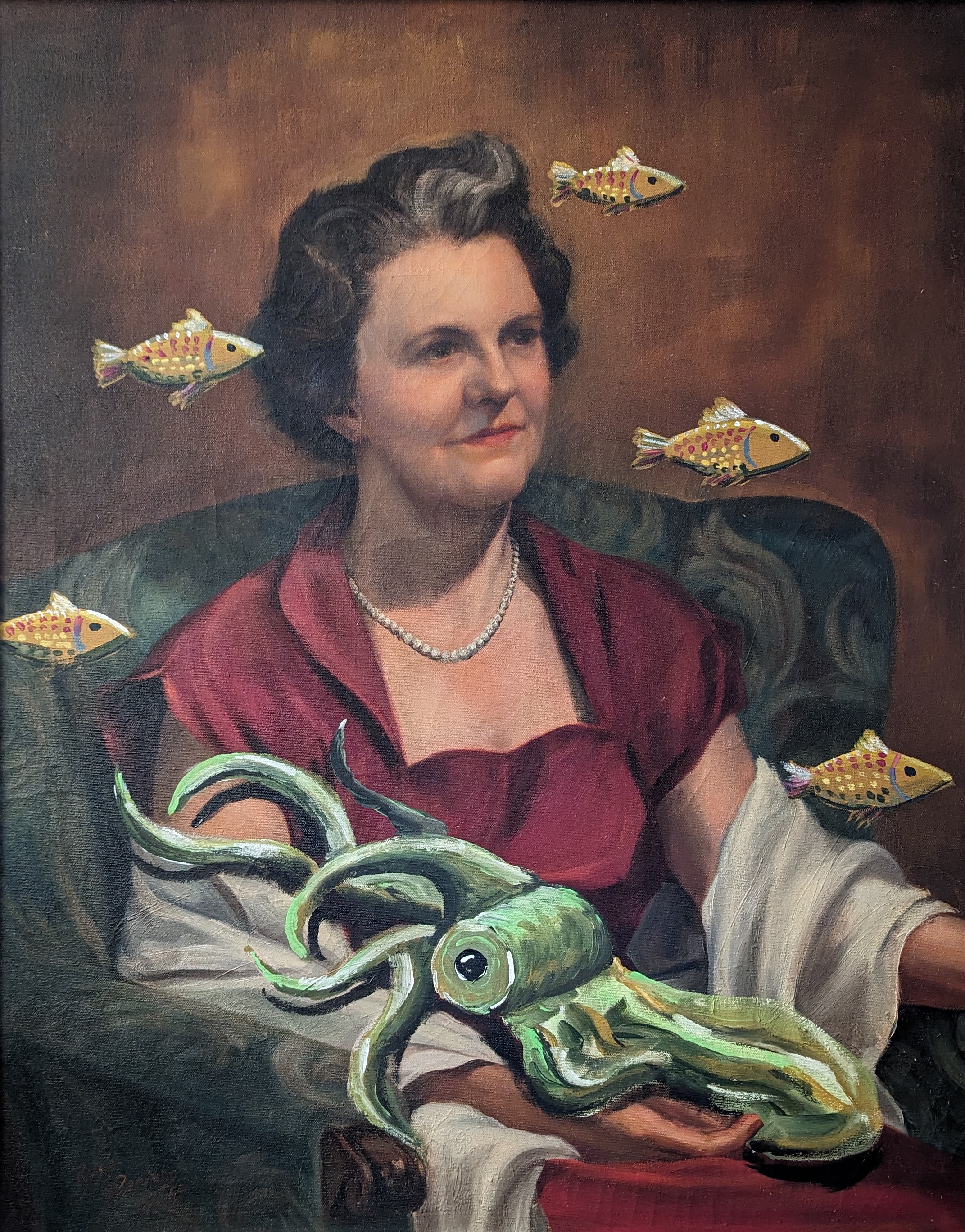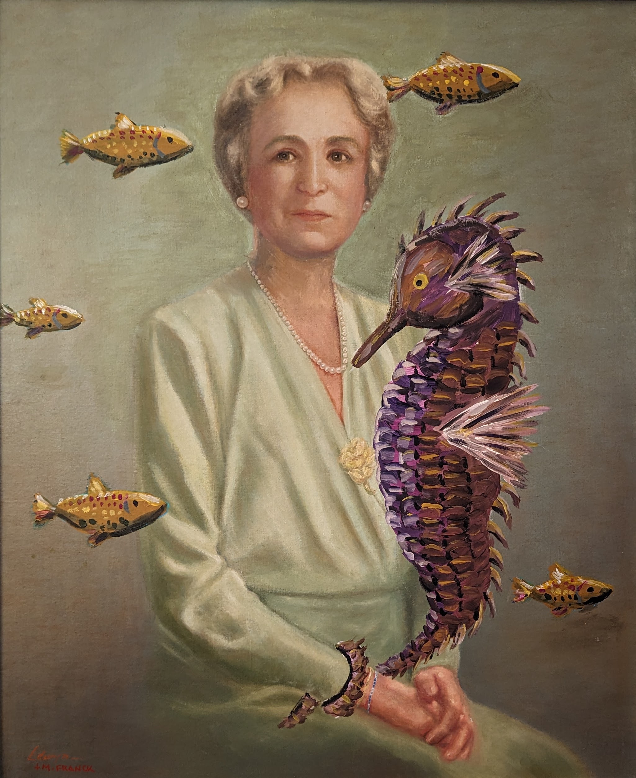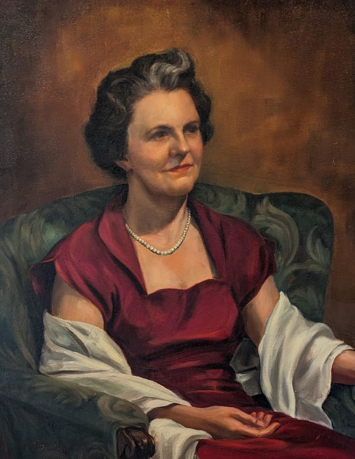 I found two sets of matriarch/patriarch portraits at online auctions in St. Louis just a week apart. All four are the same dimensions and each was painted in 1959. Together, they resemble a collection of boardroom portraits.