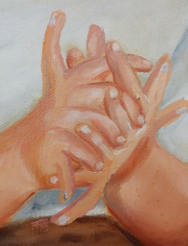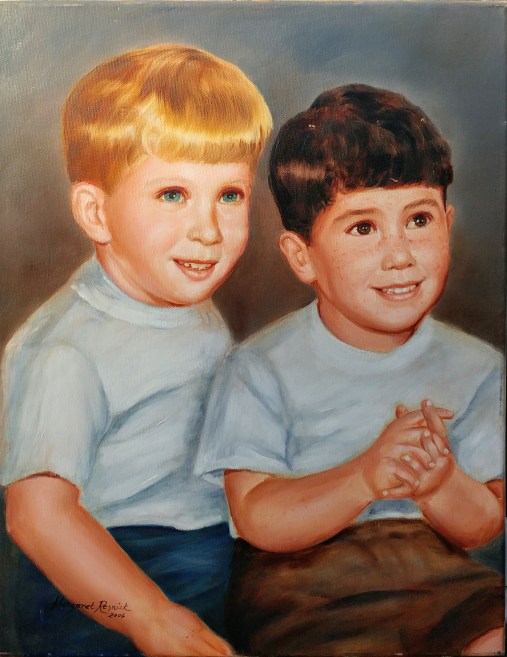 One has the head for numbers; the other has the fingers. Of all the thrift store paintings I find, portraits of children tend to be the best.
