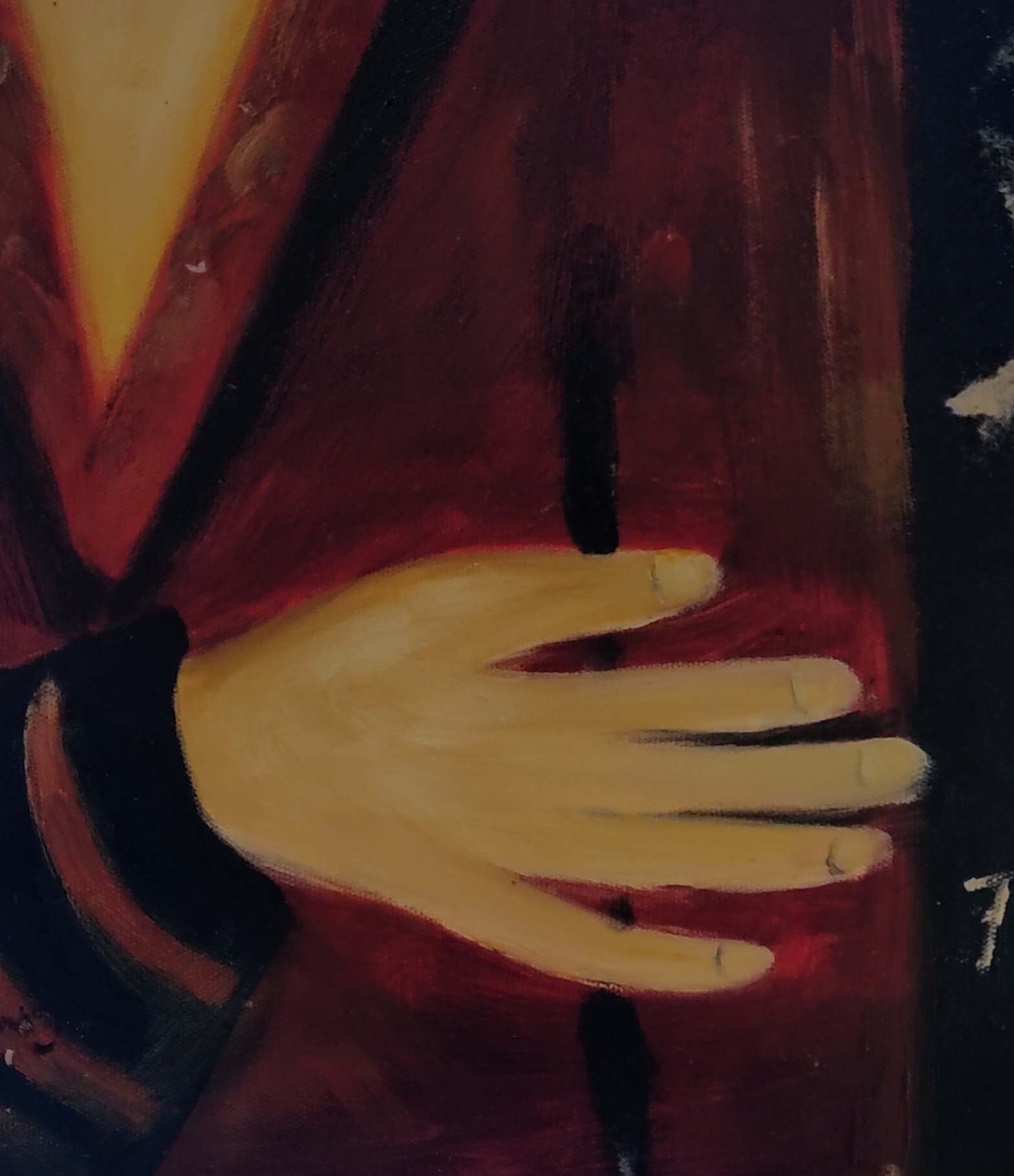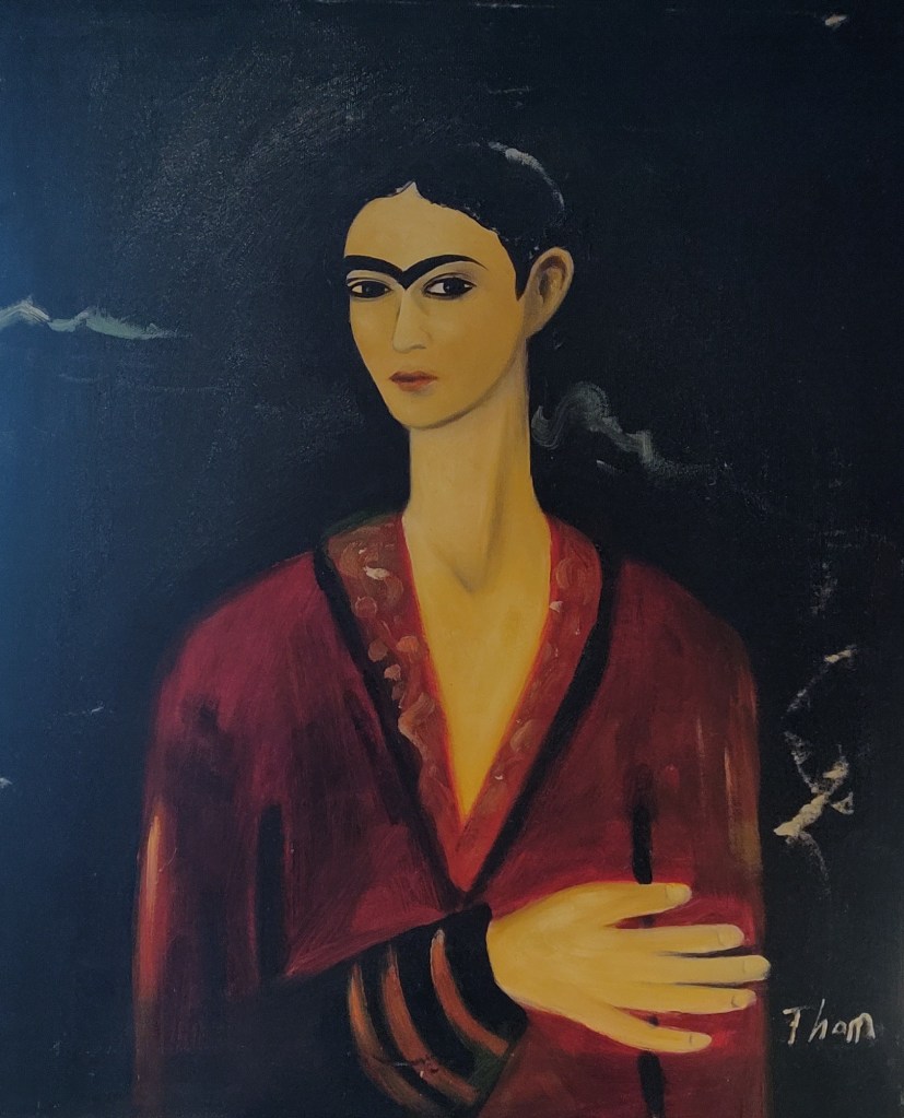 Something about this outsider painting of Frida Kahlo connects with me. But the misshapen hand had driven me nuts.