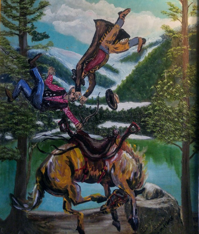 I take bad and discarded art, generally from thrift stores, and ‘improve’ on them. For a complete collection of my art, a term I use very loosely, go to matthewfranck.com/portfolio