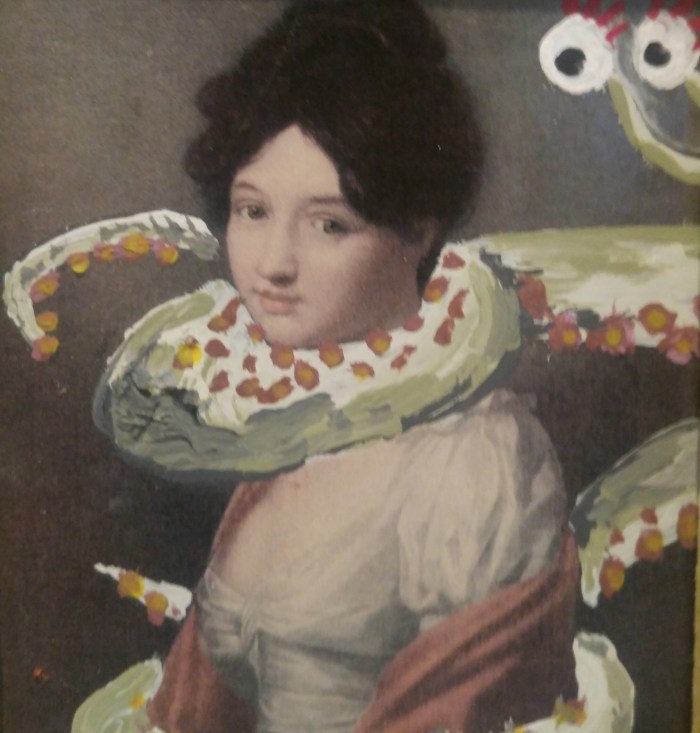 I take bad and discarded art, generally from thrift stores, and ‘improve’ on them. For a complete collection of my art, a term I use very loosely, go to matthewfranck.com/portfolio