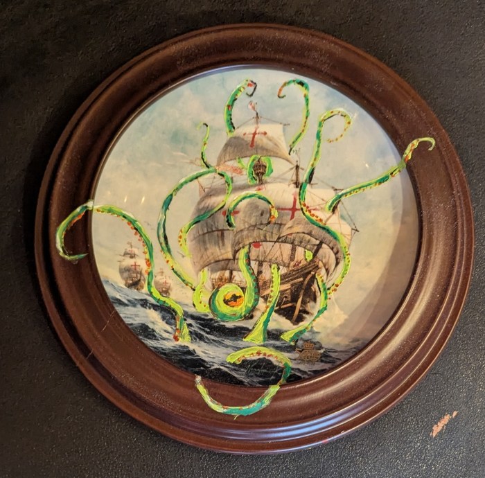 I take bad and discarded art, generally from thrift stores, and ‘improve’ on them. For a complete collection of my art, a term I use very loosely, go to matthewfranck.com/portfolio