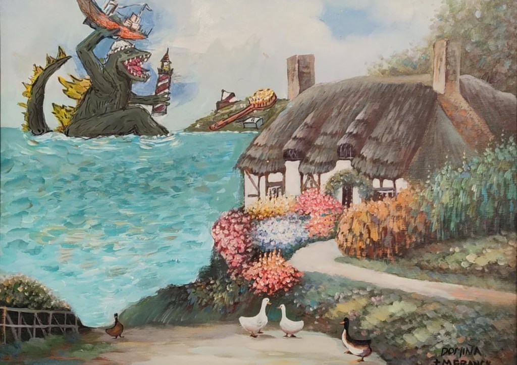 I take bad and discarded art, generally from thrift stores, and ‘improve’ on them. For a complete collection of my art, a term I use very loosely, go to matthewfranck.com/portfolio