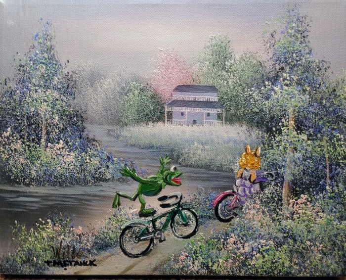 I take bad and discarded art, generally from thrift stores, and ‘improve’ on them. For a complete collection of my art, a term I use very loosely, go to matthewfranck.com/portfolio