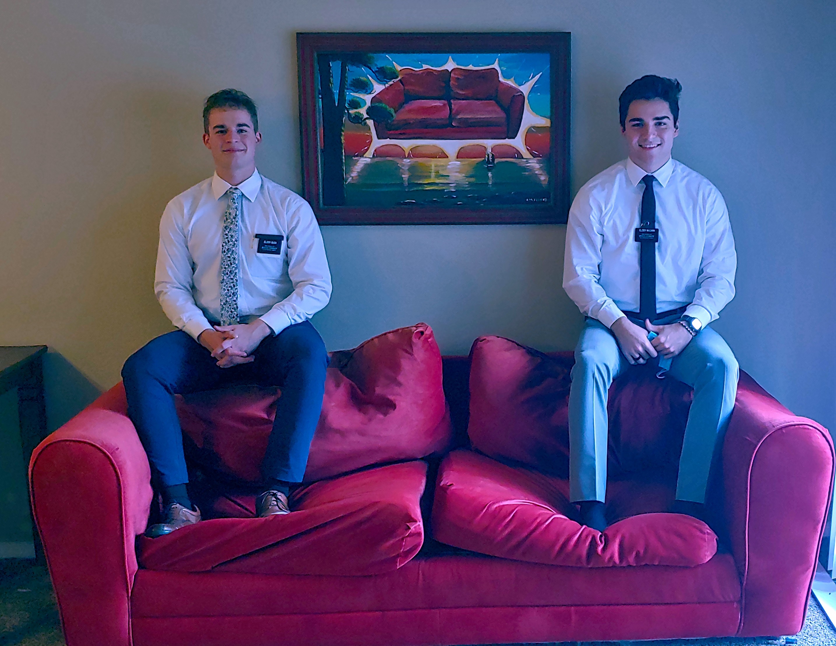 I found some missionaries in my congregation who were willing to let me paint their couch and install the piece in their apartment.