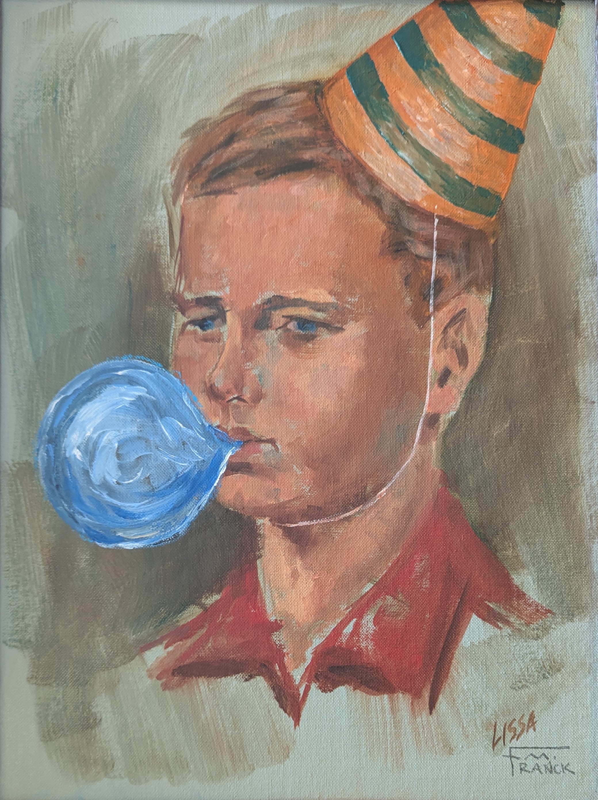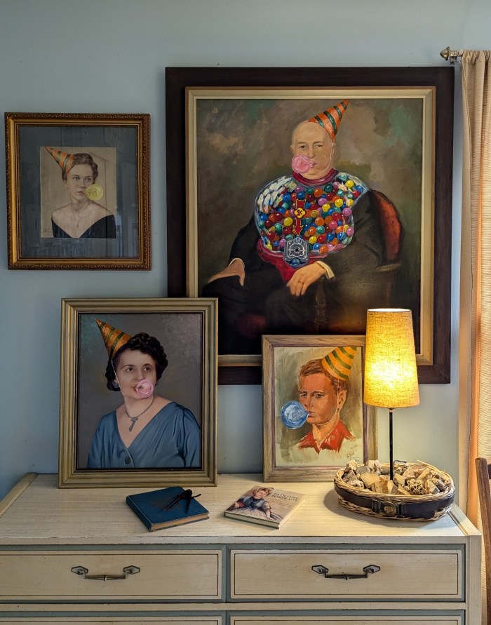 This man’s natural shape lent itself to this treatment. He joins a bubblegum portrait of a woman I did awhile back. I then added two other family members.
