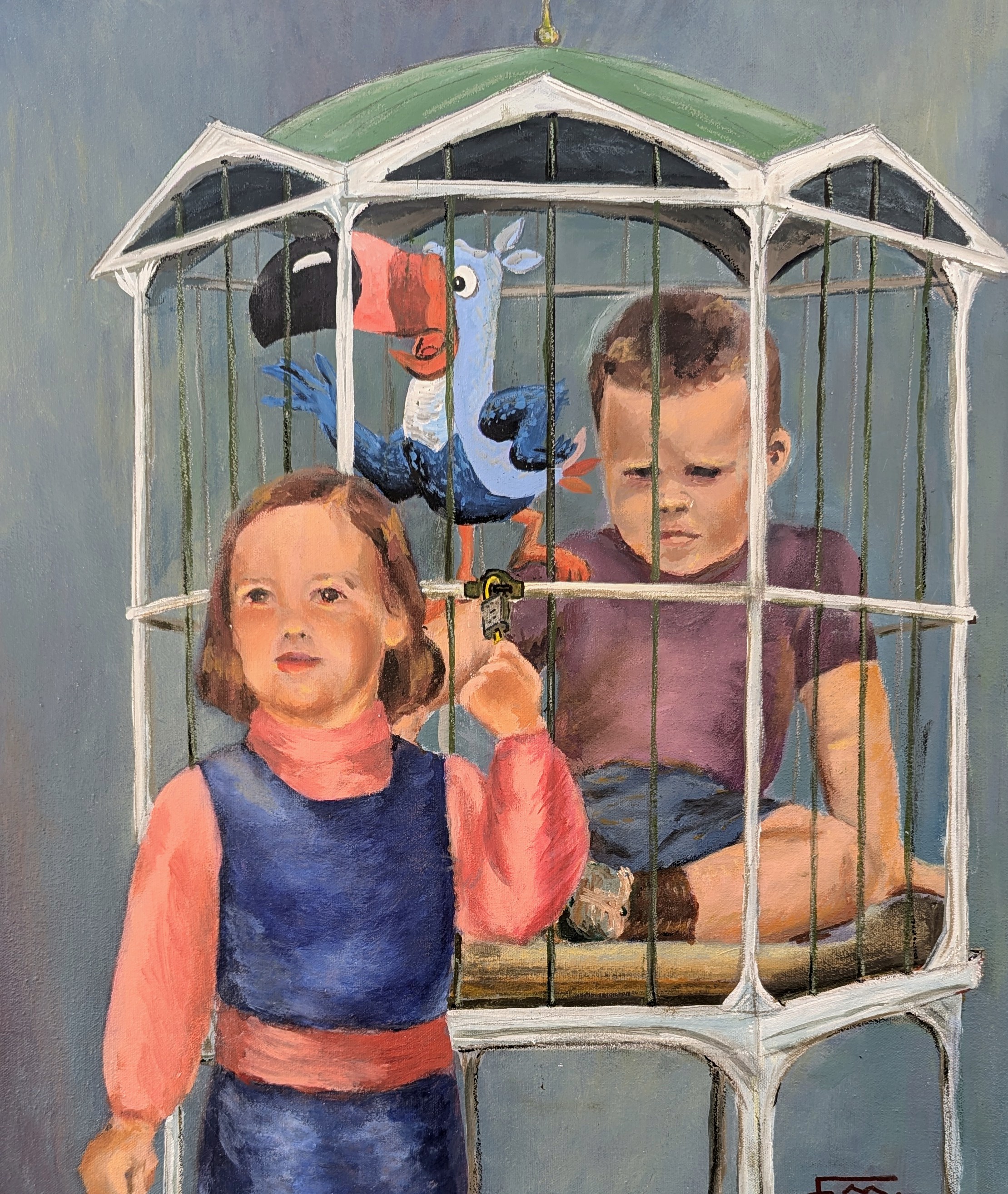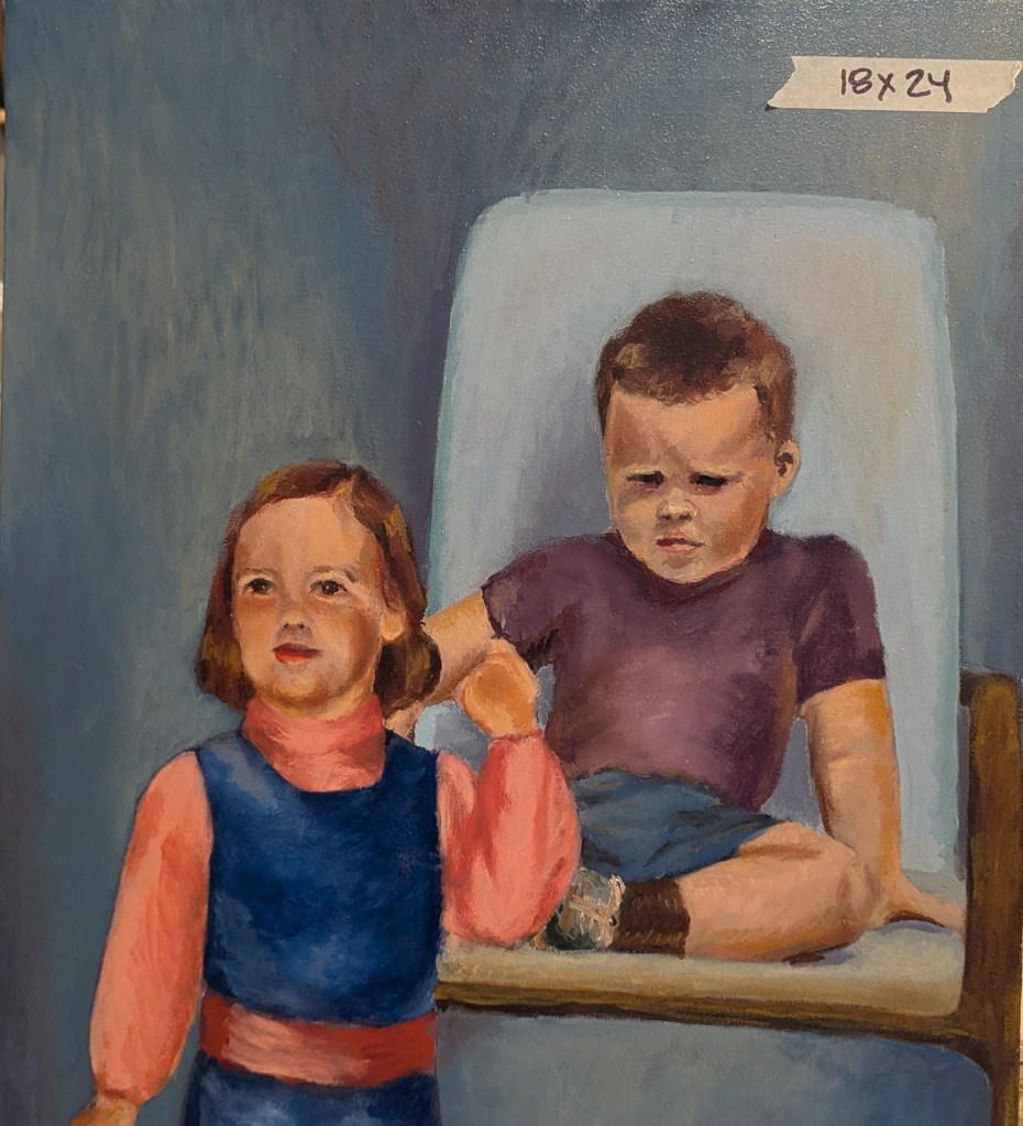 I owned this peculiar painting for months. The seating of the children is highly unusual and I could never quite figure out the girl’s position. Perhaps she’s comforting her brother at a doctor’s office?