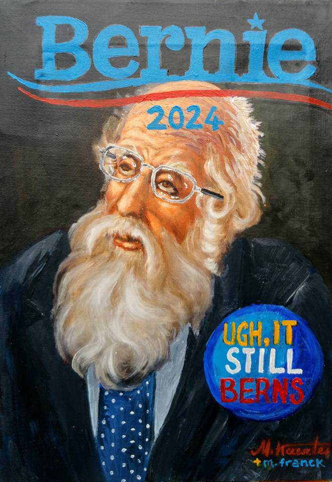 I bought this portrait online and had intended to do something Santa-related. Then a friend pointed out that he looked like a very old Bernie Sanders.