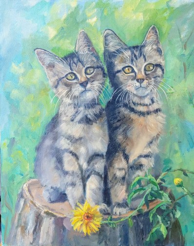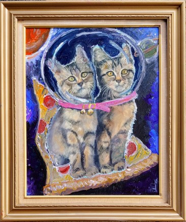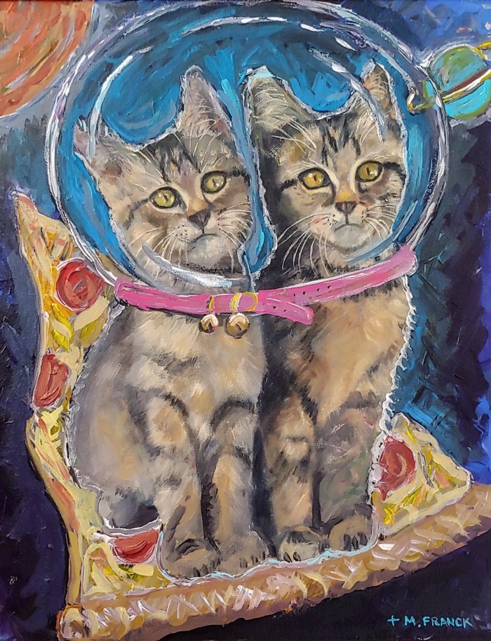 My first cat project. I almost had them ride a meteor. Pizza is better.