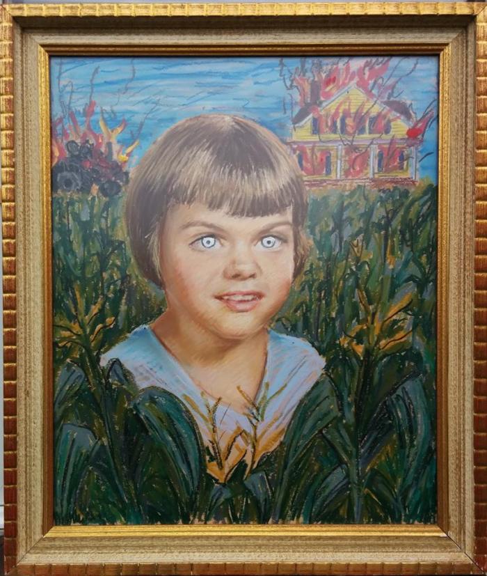 I found a pair of brother and sister pastels at Goodwill. My inspiration was Children of the Corn and Village of the Damned.
